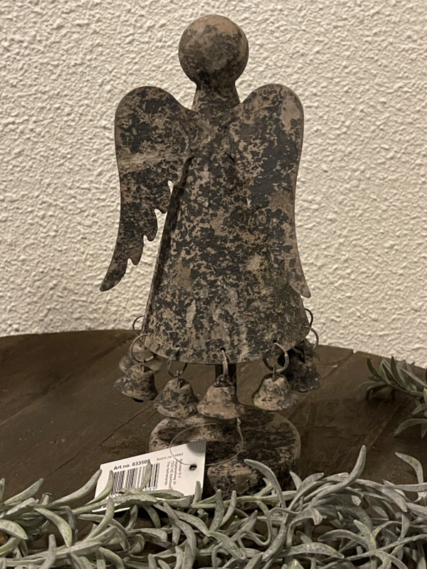 Metalen engel grijs met muntjes groot 33cm hoo 12cm ø