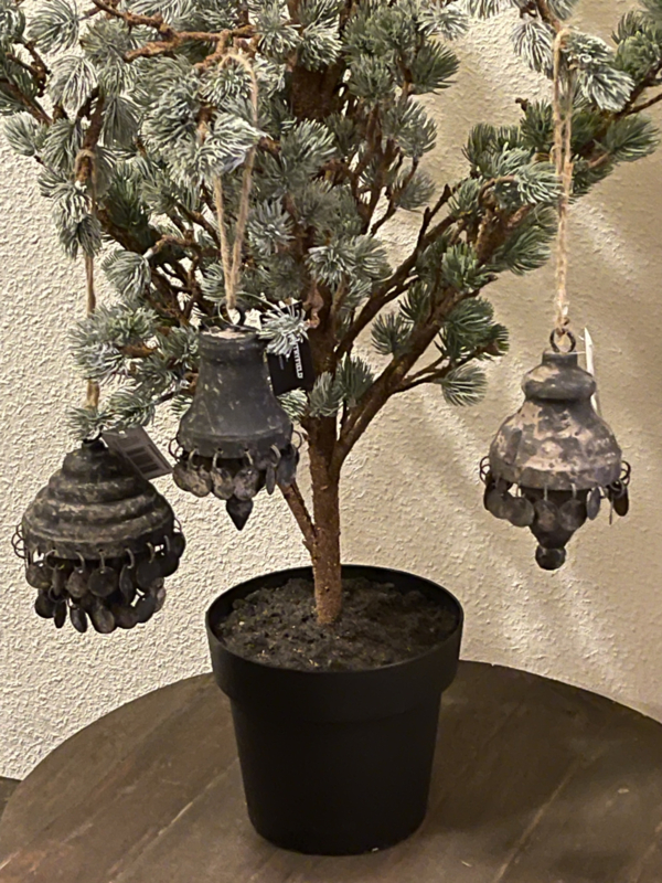 Metalen pinakel met muntjes grijs 15cm hoog 8,5cm ø